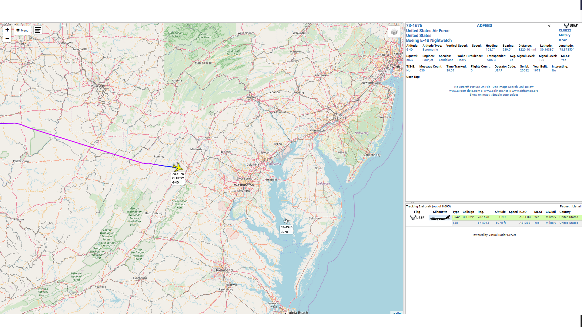 Lietadlo "Súdneho dňa" Boeing E-4B Nightwatch letel smer Washington a zosadol na Joint Base Andews ( domovskom letisku Air Force One )