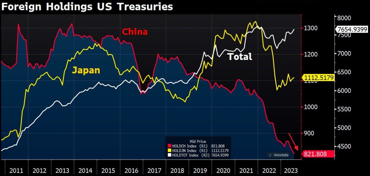 https://t.me/banksta/42646Americké dluhopisy nyní zažívají nejsilnější medvědí trh v historii. Třicetileté dluhopisy se od svého vrcholu propadly o 50 % - BofA. Situaci podporuje Čína, která zrychluje prodeje amerických státních dluhopisů.