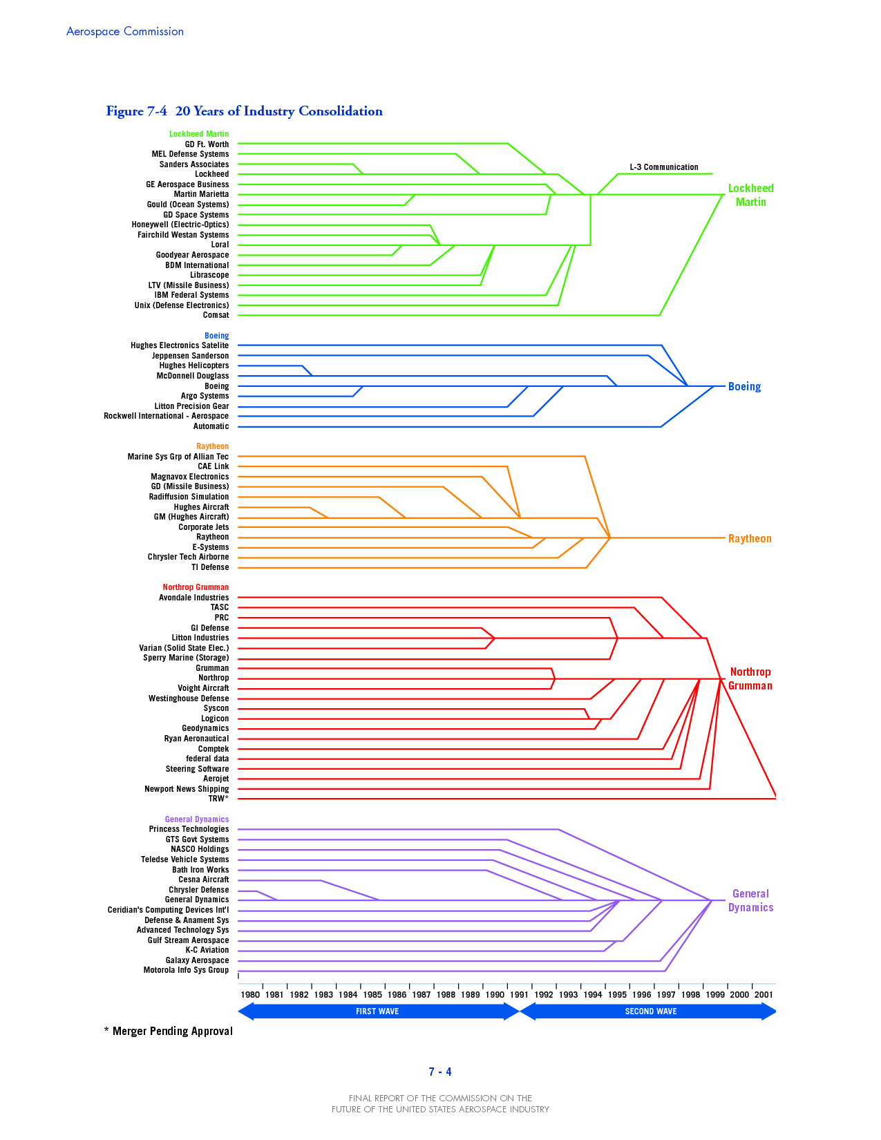 Fúzie firiem od 1979 do 2001 v USA a rok fúzie = vznik gigantov ako Lockheed Martin / Boeing / Raytheon / Northrop Grumman / General Dynamics