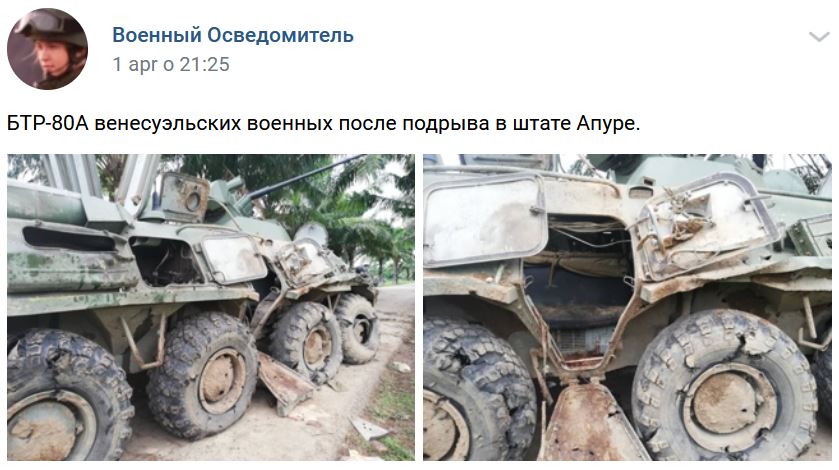 ↑ BTR-80A venezuelskej armády po bojoch na hranici s Kolumbiou s FARC: