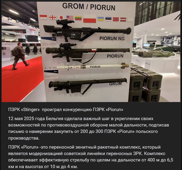 Belgicko v pondelok 12.05.2025 urobilo dôležitý krok k posilneniu svojich kapacít protivzdušnej obrany krátkeho dosahu podpísaním listu o zámere kúpiť 200 až 300 prenosných systémov protivzdušnej obrany Piorun poľskej výroby.