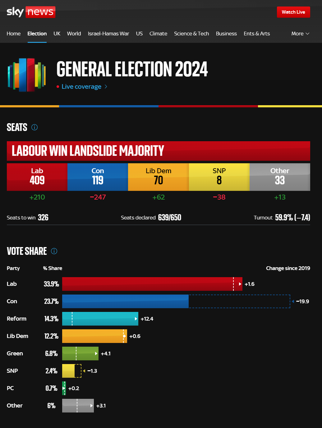 Navzdory druhému místu v průzkumu se neočekává, že by jeho strana prosazující například tvrdší protiimigrační pravidla dosáhla tento výsledek ve volbách, které Sunak vyhlásil na 4. července. Většinový volební systém dává větší šance stranám, které mají silnou podporu v konkrétních volebních obvodech, což jsou labouristé a konzervativci. Farageova strana má vyrovnanou voličskou přízeň po celé Británii, avšak v málokterém obvodu je schopna zvítězit a získat mandát, soudí britská média.