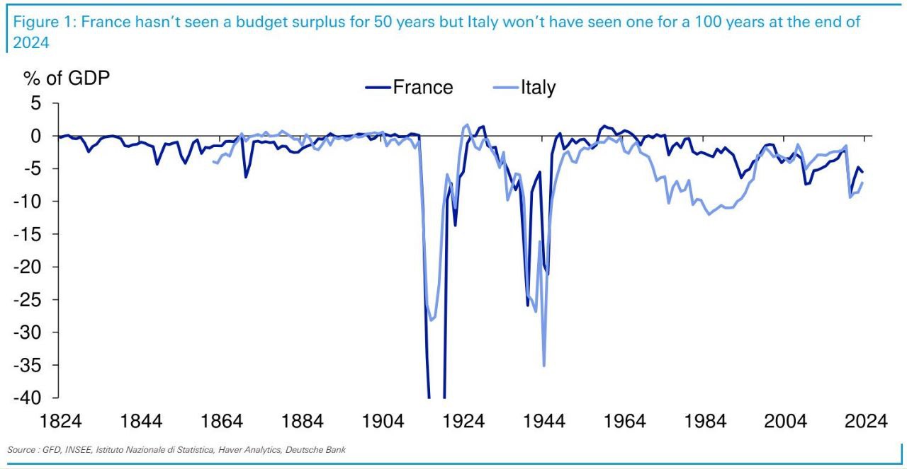 Francie nezaznamenala rozpočtový přebytek již 50 let a Itálie jej nezaznamenala již sto let. @banksta
