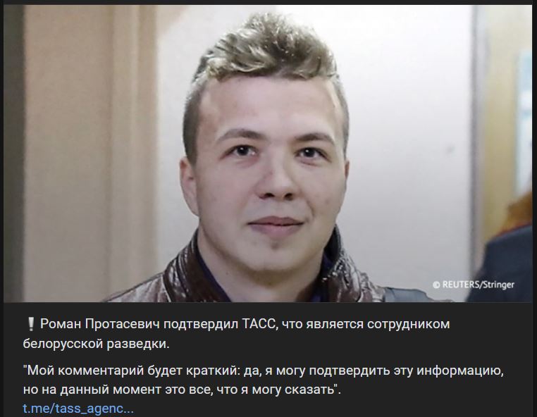 Roman Protasevič (Роман Протасевич) potvrdil agentúre TASS (ТАСС), že je zamestnancom bieloruskej spravodajskej služby.
