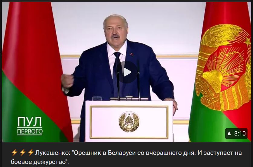 V pondelok 22.12.2025, prezident Bieloruska Alexander Lukašenko (Александр Лукашенко) na tlačovej konferencii vyhlásil, že na území Bieloruska bude umiestnených maximálne 10 raketových komplexov „Orešnik“ (Орешник). Reálne bol dialóg trochu iný – Lukašenka sa opýtali:
