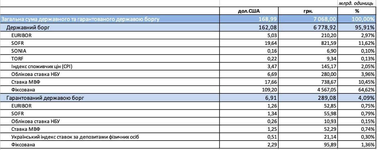 - Domácí dluh - 1,93 bilionu hřiven, tj. 46,07 miliardy dolarů.