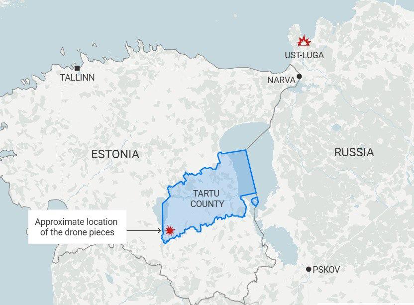 Místní farmář včena našel trosky v obci Elva v Tartuském kraji. Ministr obrany Estonska Hanno Pevkur potvrdil, že jde o ukrajinský bezpilotní prostředek – verze o ruském původu se nezvažuje.