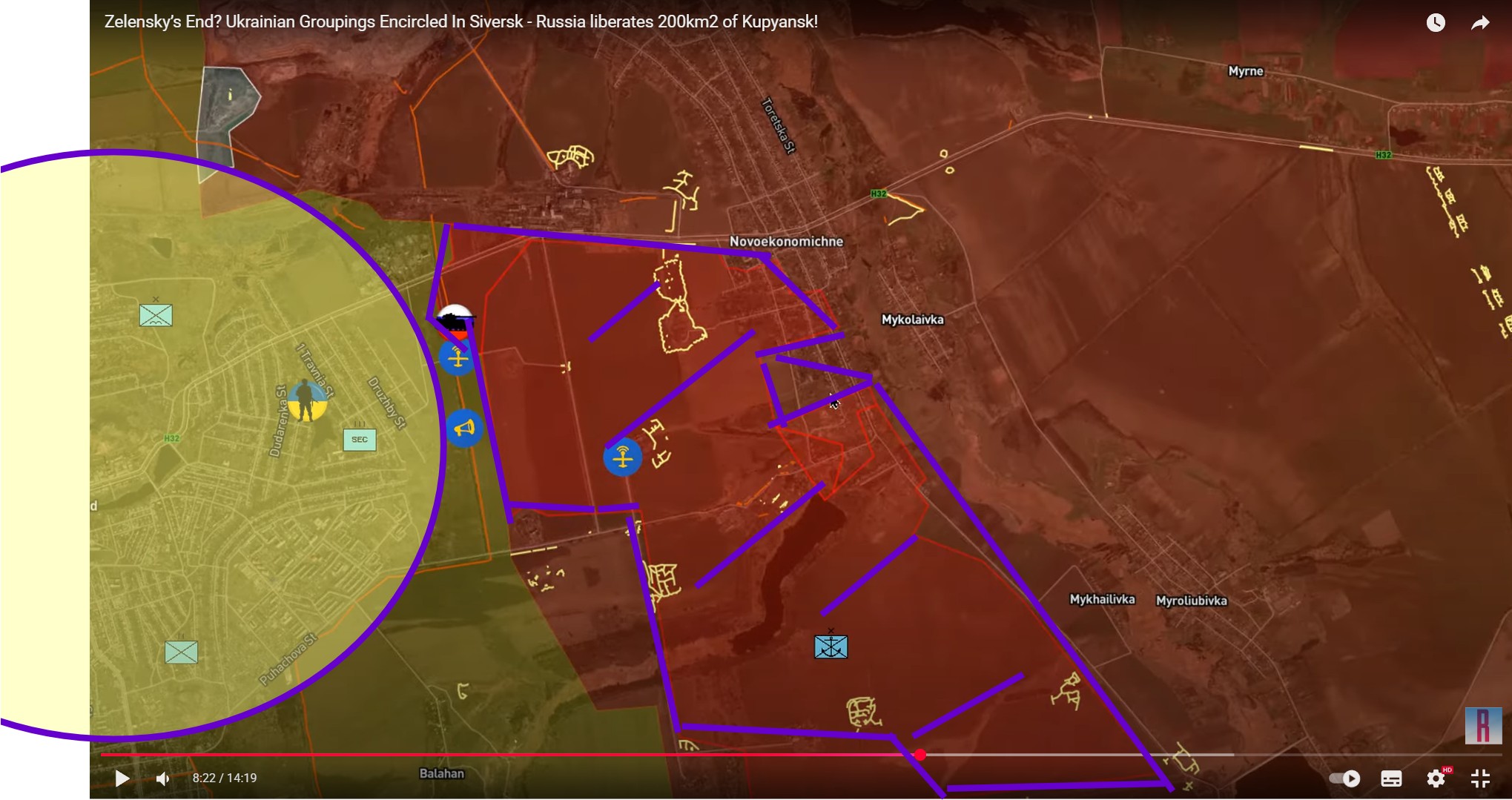 Myrnohrad. Rusi obsadili značné územie západne od mesta!