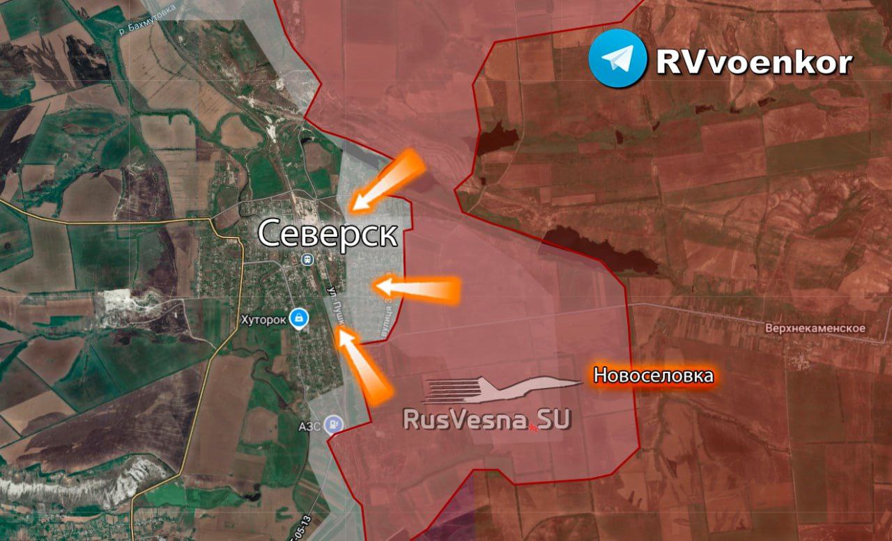 ▪️Ozbrojené sily Ruskej federácie najprv vstúpili do Severska z juhu, potom obsadili východ, juhovýchod a severovýchod a postúpili k centru kľúčového mesta pre obranu nepriateľa.