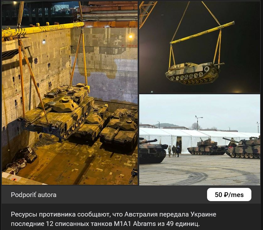 Zdroje nepriateľa informujú, že Austrália odovzdala Ukrajine posledných 12 vyradených tankov M1A1 Abrams z celkového počtu 49 kusov.