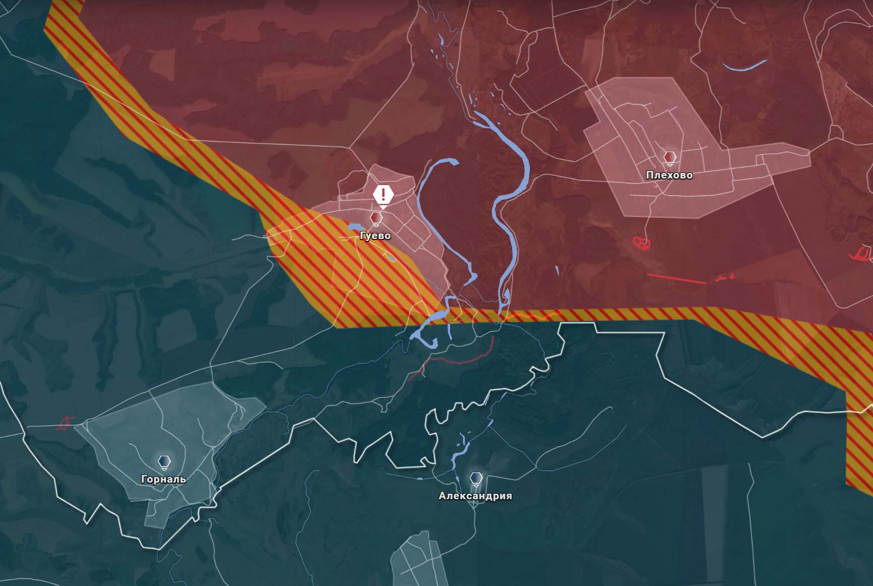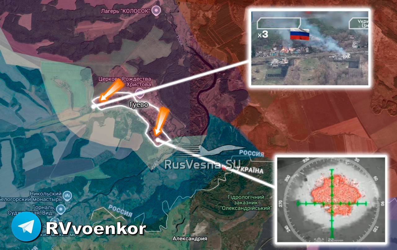 Zároveň sa ešte donedávna na okraji obce nachádzali ukrajinské formácie, ale teraz, súdiac podľa záberov aj vyjadrení, sa v Gueve nenachádzajú žiadne ukrajinské ozbrojené sily.