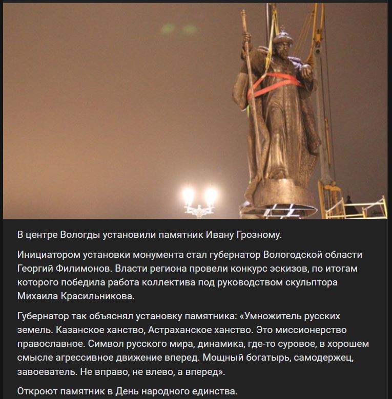 V centre Vologdy bol postavený pomník Ivanovi Hrozivému / Impozantnému.