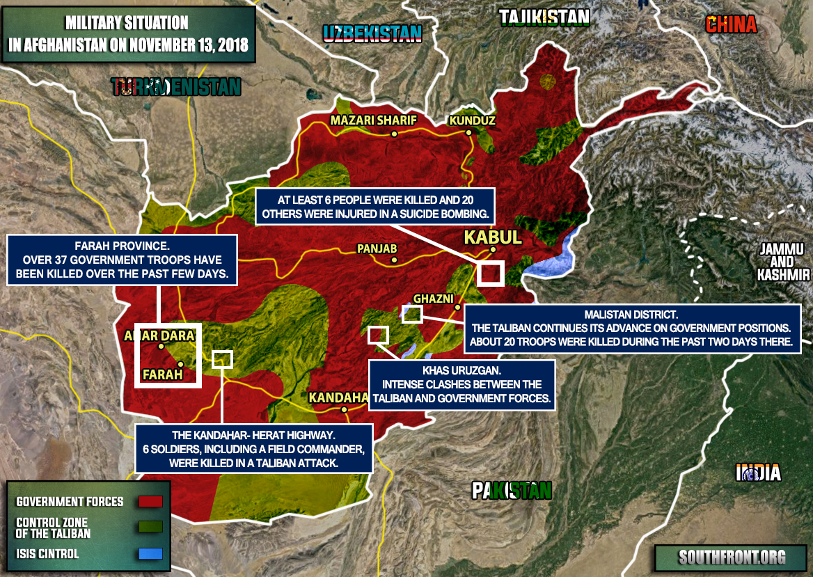 Vojenská situace v Afghánistánu dne 13. listopadu 2018