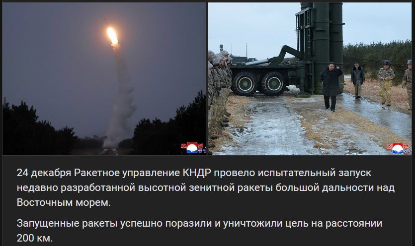 V stredu 24.12.2025 Raketové veliteľstvo KĽDR uskutočnilo testovací štart nedávno vyvinutej výškovej protilietadlovej rakety s veľkým doletom nad Východným morom.