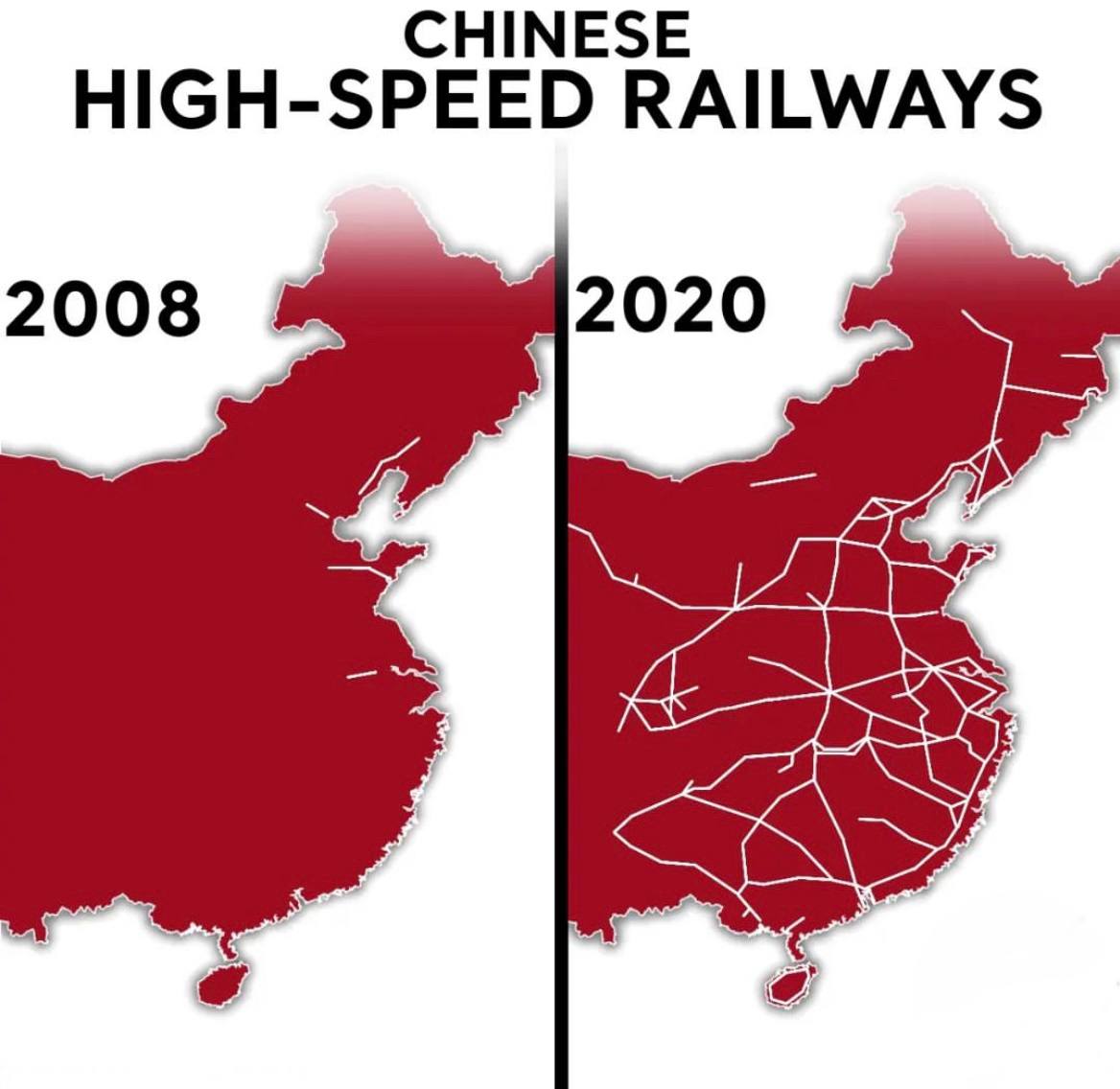 Dynamika vysokorychlostní železniční sítě v Číně v letech 2008-2020