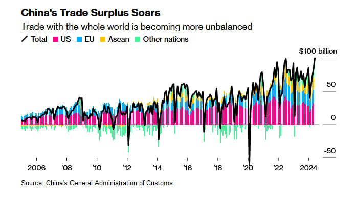 Nerovnováha rozrušila některé z největších obchodních partnerů Číny. 2024[BBG] (https://t.me/BIoomberg)