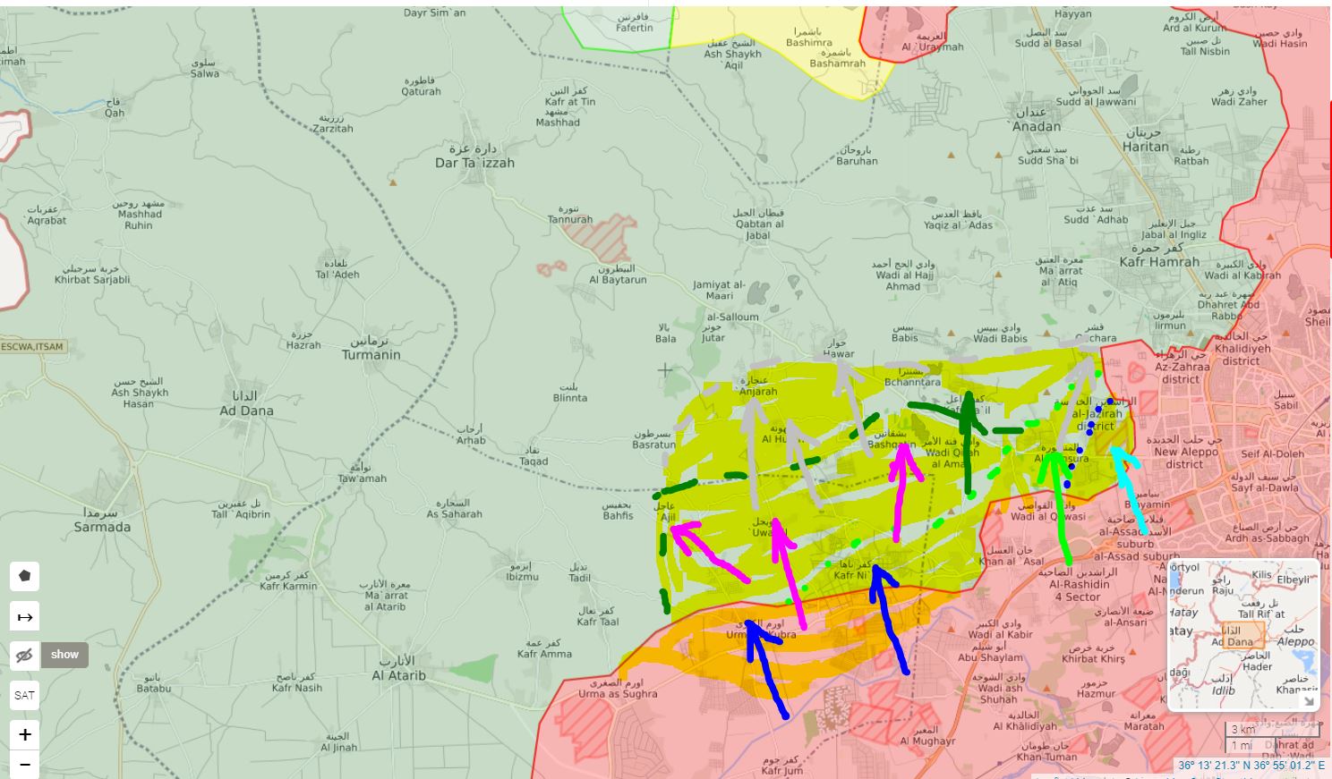 16. februára Hay'at Tahrir al-Sham (HTS) s účasťou al-Káidy a jej spojenci podporovaní z Turecka začali ďalší útok na pozície na sýrskej arabskej armáde (SAA) v západom Aleppe.