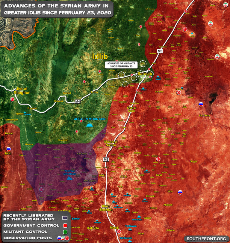 Sýrska armáda oblieha turecké pozorovacie miesto v Sher Maghar (južný Idlib), zatiaľ čo ruské lietadlá sledujú tento bod. Je najväčším v Hame a Idlibe