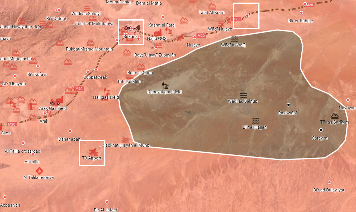 Podľa denníka al-Watan bol útok zameraný na okraj mesta al-Sukhnah a na stanicu T3 na východe Homsu, ako aj na strategickú diaľnicu M20, ktorá spája Homsa s východným guvernorátom Deir Ezzor.