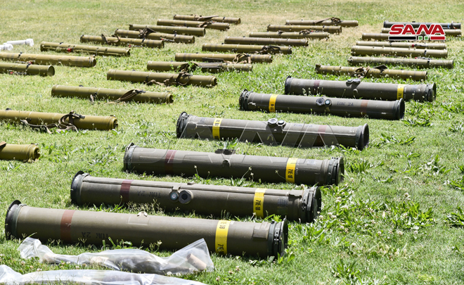 Podľa poľnej správy guvernátu Daraa, sýrske bezpečnostné sily objavili opustený sklad plný rakiet vyrobených v USA a Izraeli, ktoré boli kedysi pod kontrolou militantných síl.