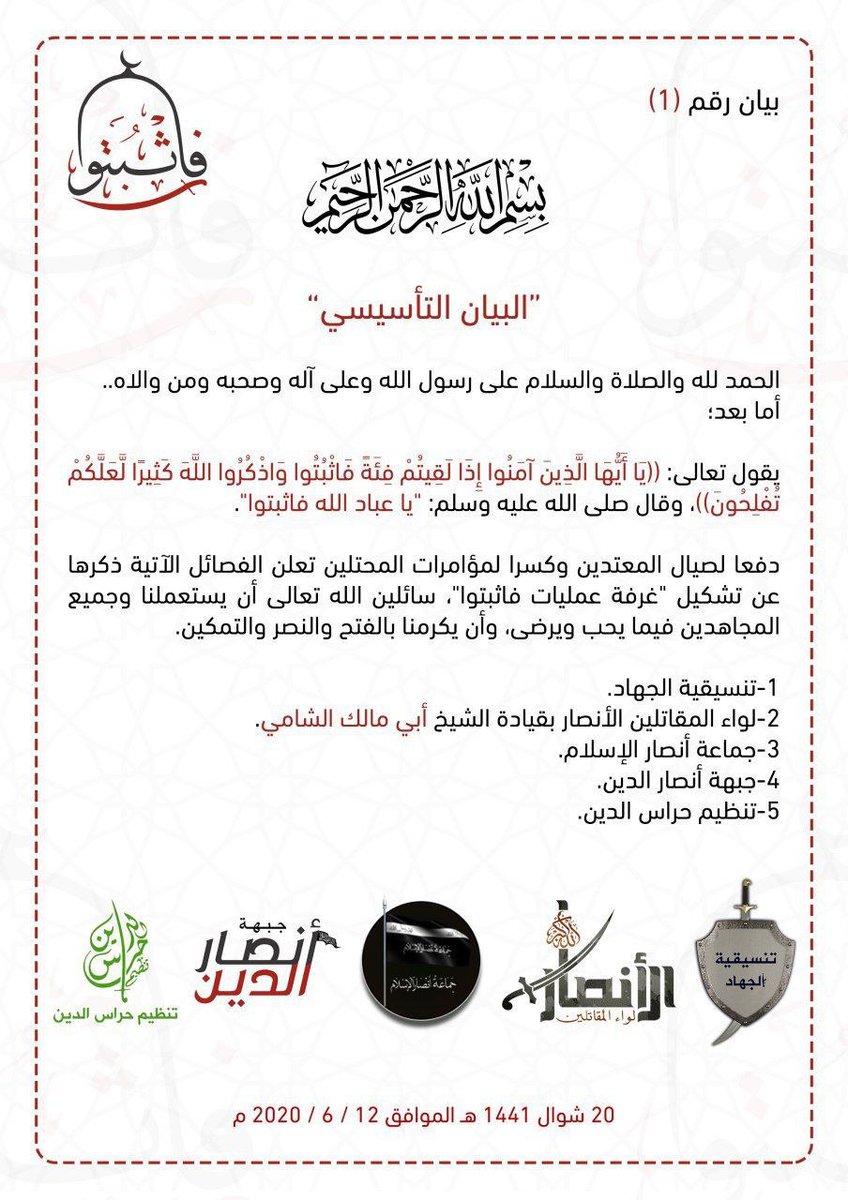 5 džihádistických frakcií v Idlibe, ktoré sú proti prímeriu uvalenému na túto oblasť, vytvorili spoločnú operačnú miestnosť. Niektoré frakcie sú vedené veliteľmi, ktorí odišli z Hayat Tahrir a-Sham.