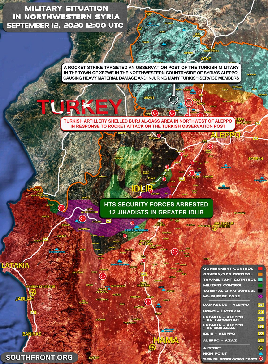 Okrem toho v predvečer CPVS informovala aj o ďalšom ostreľovaní niekoľkých osád v Aleppe a Idlibe silami rovnakej skupiny Jabhat al-Nusra (dnes známej ako Hayat Tahrir al-Sham).