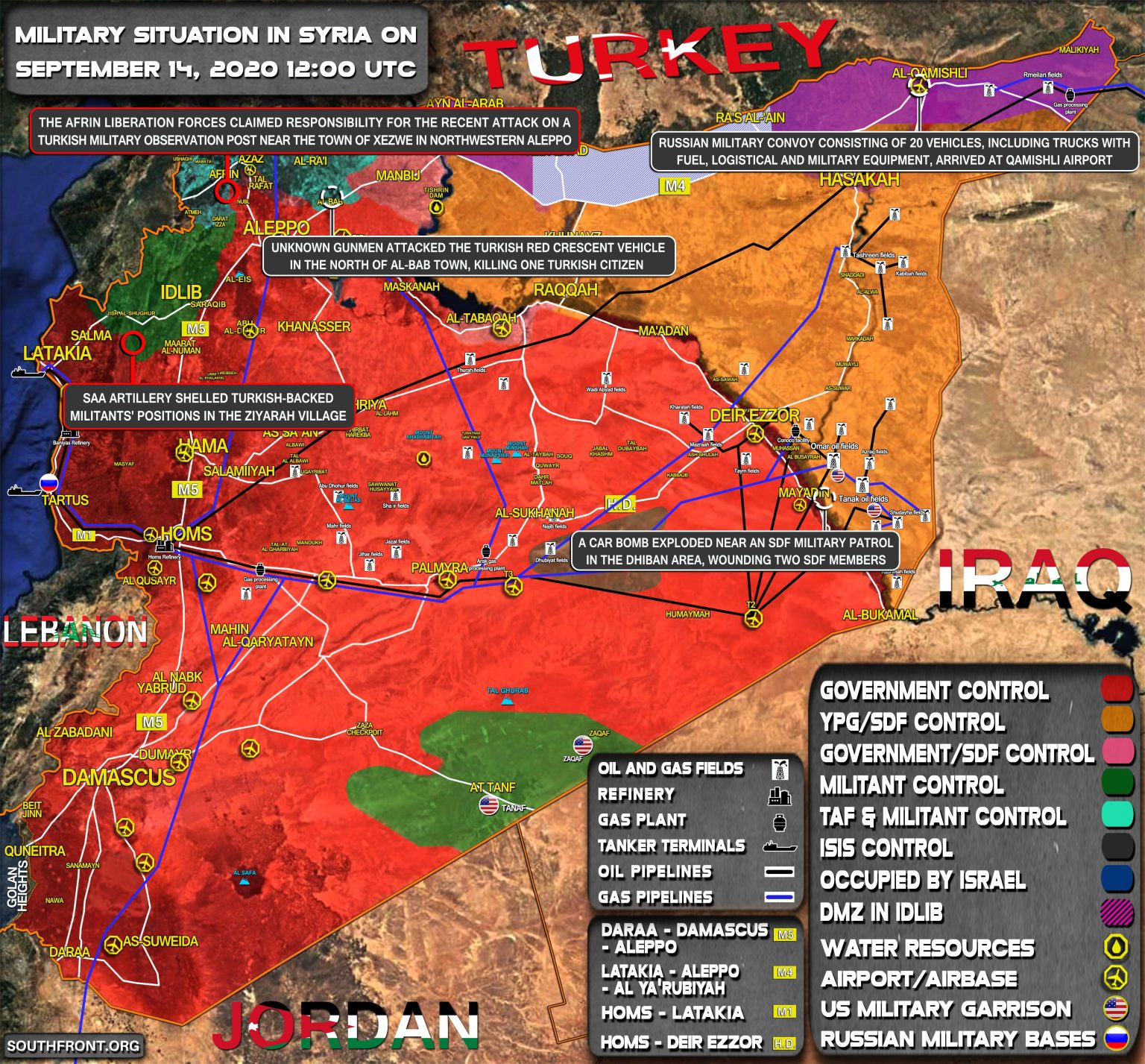 Ruský vojenský konvoj pozostávajúci z 20 vozidiel vrátane nákladných vozidiel s palivom, logistickou a vojenskou technikou dorazil na letisko Qamishli;