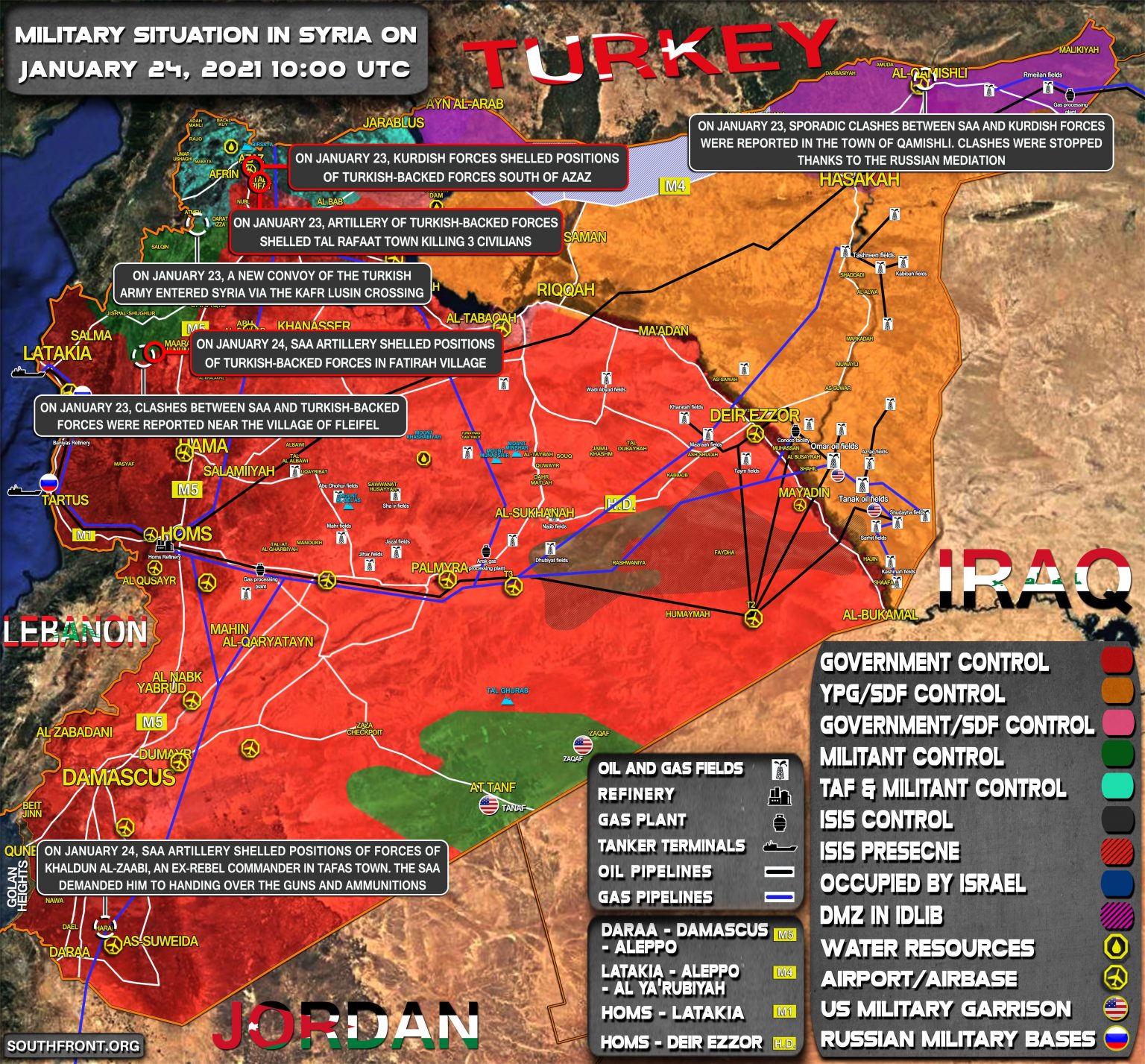 VOJENSKÁ SITUÁCIA V SÝRII 23. JANUÁRA 2021 (AKTUALIZÁCIA MAPY)