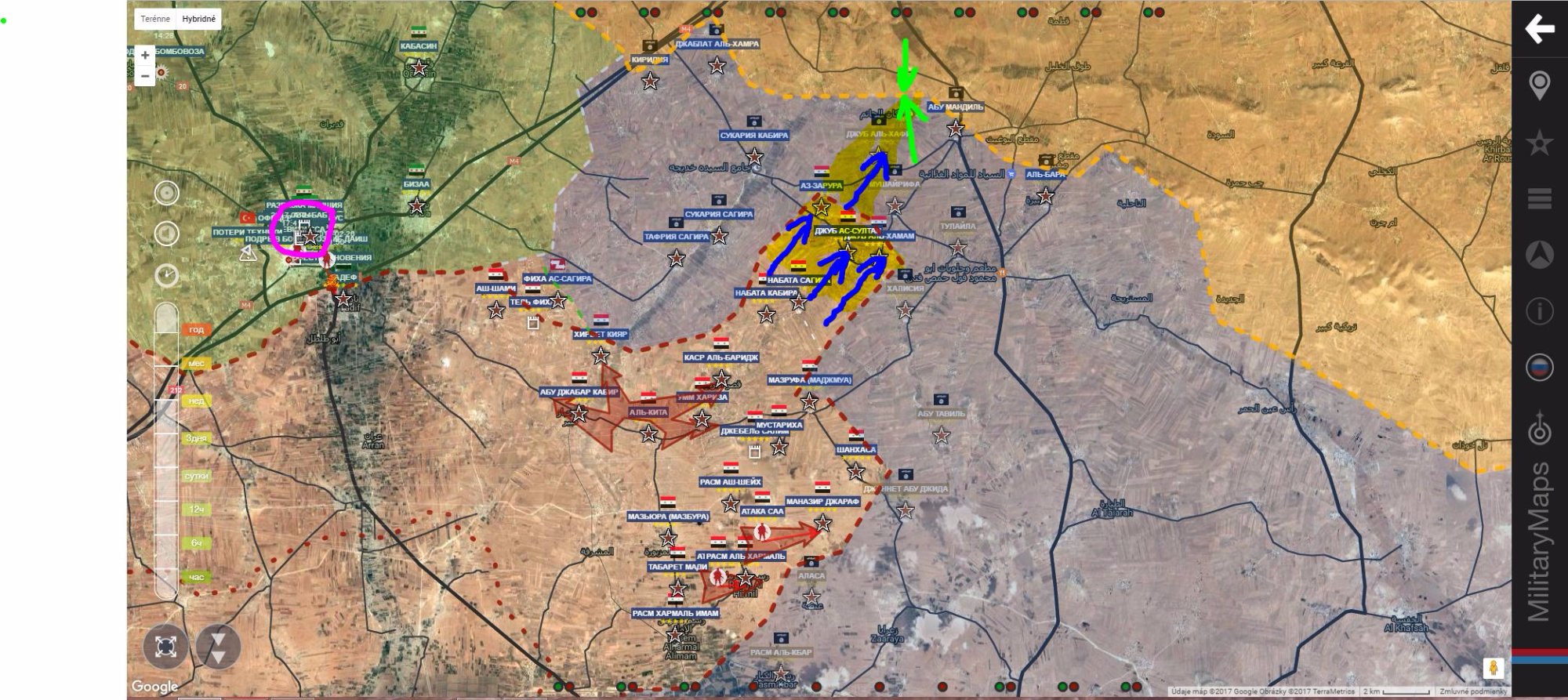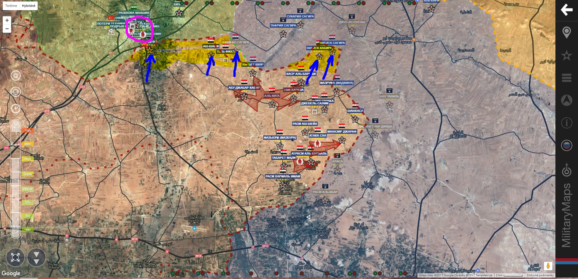 Syrská armáda pokračuje v útok na pozice ozbrojenců organizace Islámský Stát, nedaleko od letecké základny Kuvejris. Stojí za to připomenout, že včera syrská armádou a Tiger force vyhnali ozbrojence Islámského státu z velkého množství obcí a výšk, takových jak Salim, Kasr al-Burejdž, Umm-Charza, Mustaricha Meri, Al - Kyta, Al-Džadida, Al-Mazrufa, Chirbet Kabbar, Šanchasu, Aš - Šami a Ruvejdu al - Bab.
