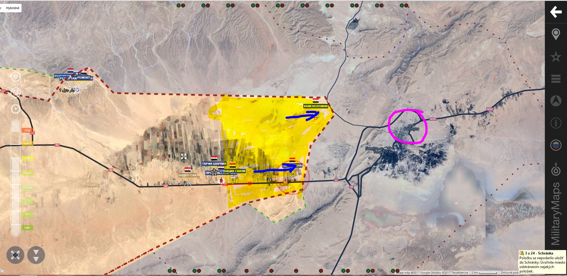 Přicházejí zprávy, že se syrské armádě a spojencům podařilo obsadit výšku Džabal Chajal a momentálně probíhají boje za výšku Džabal al - Tarr. Rovněž boje probíhají u samotného města, část syrské armády mezi tím rychle postupují do hloubky území kontrolovaných Islámským státem u Palmiry. Kontrolu nad výškou kolem Palmiry umožní v nejbližší době vyvinout tlak a znovu osvobodit město od Islámského státu.