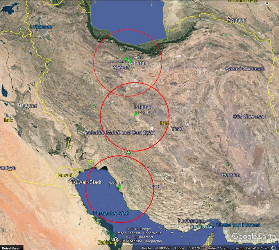 Mapa pokrytia Iránu s PVO S-300PMU2
