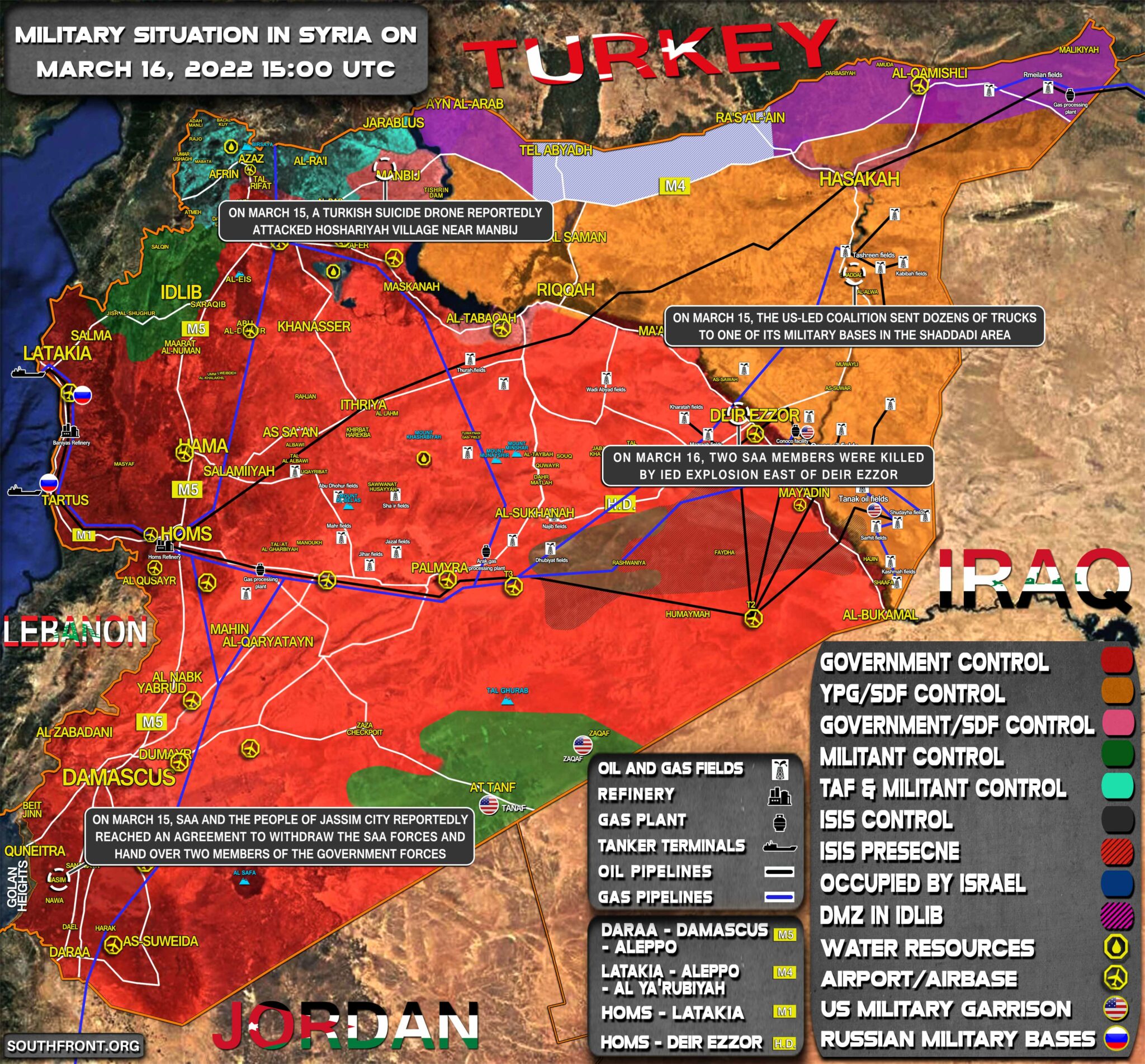 Vojenská situácia v Sýrii 17. marca 2022 (aktualizácia mapy)