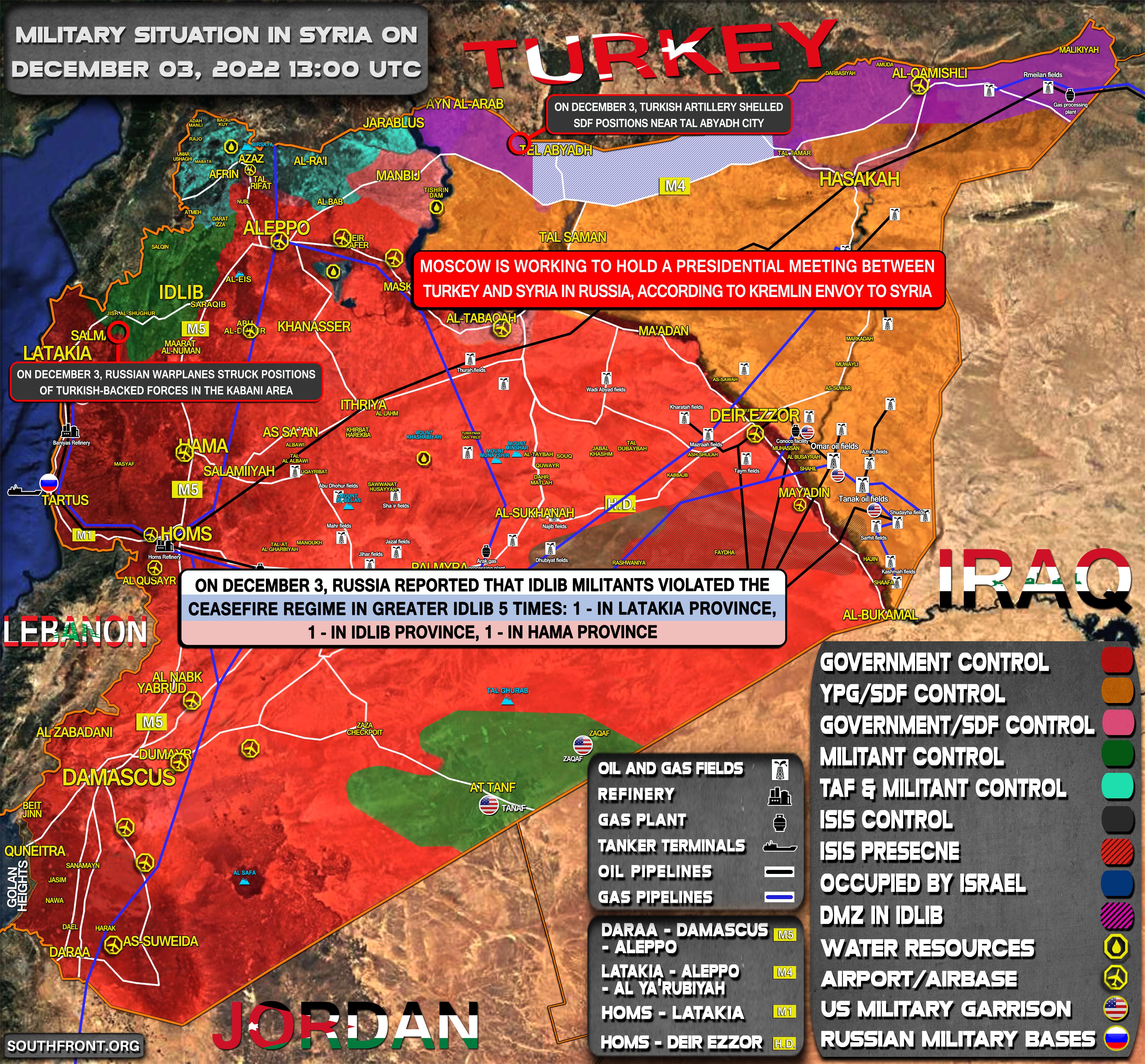 Vojenská situácia v Sýrii 1. decembra 2022 (aktualizácia mapy)