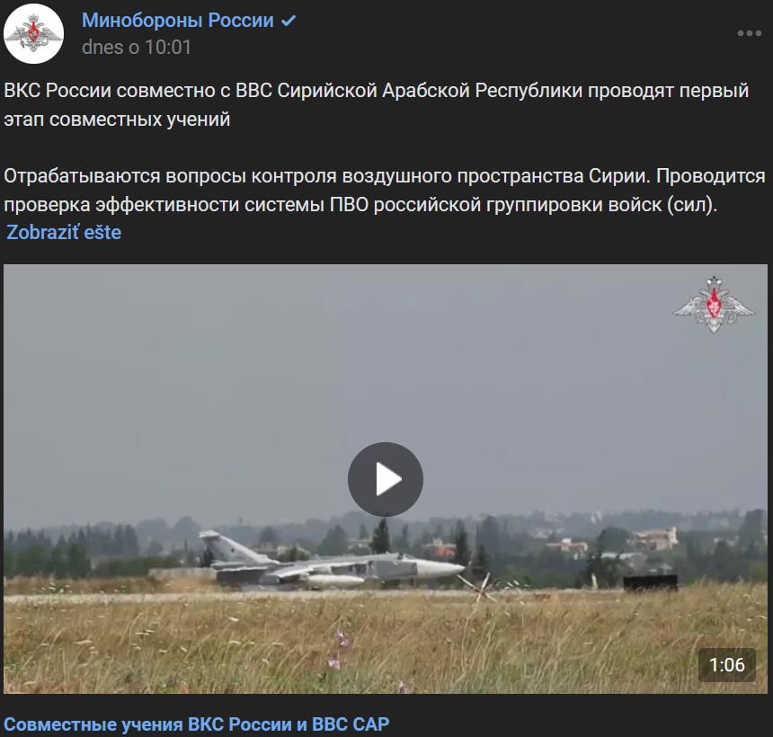 VKS Ruska spoločne s VVS Sýrskej Arabskej Republiky uskutočnili prvú etapu spoločných cvičení