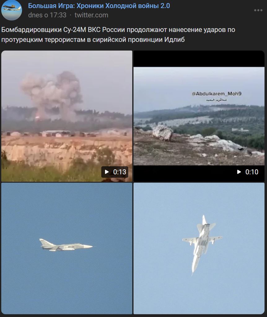 Bombardéry Su-24M (Су-24М) VKS Ruska pokračujú v úderoch proti protureckým teroristom v sýrskej provincii Idlib