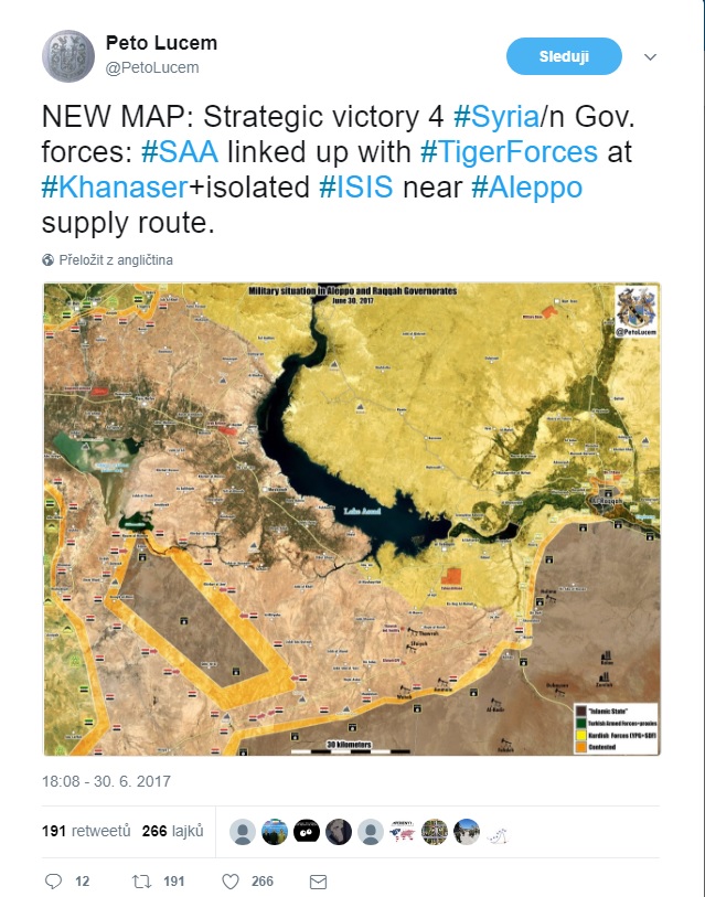 "Vo štvrtok 29.06.2017 minimálne tri americké lietadlá uskutočnili prieskumné lety vo východnej časti Stredozemného mora pri Sýrskom pobreží a ruskej námornej základne v Tartuse. Len za posledný týždeň