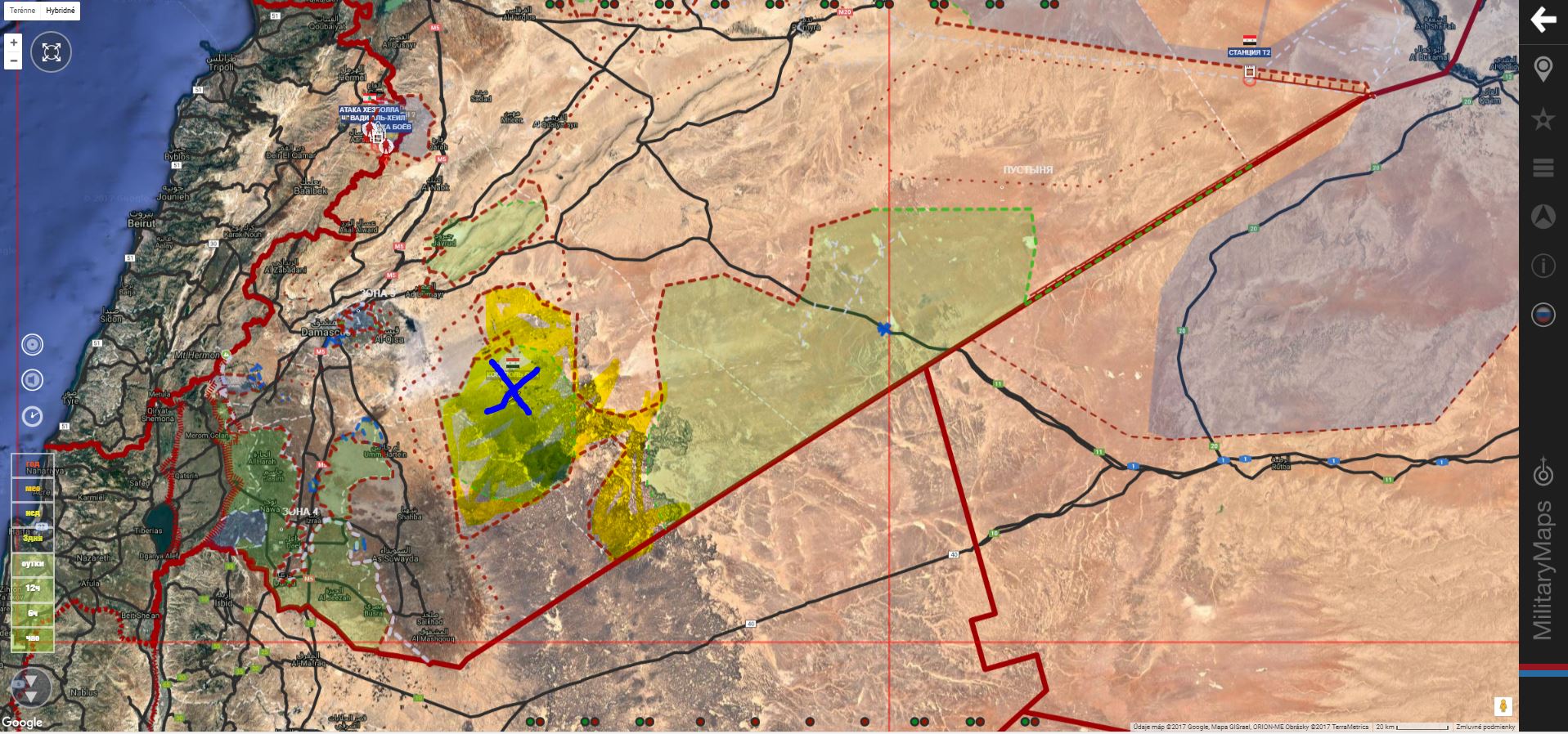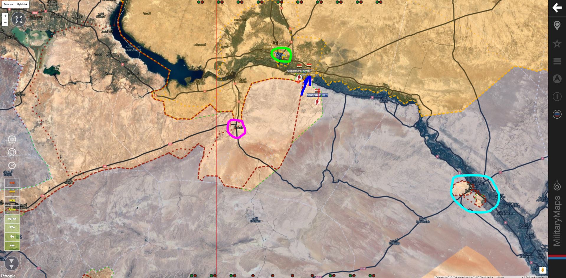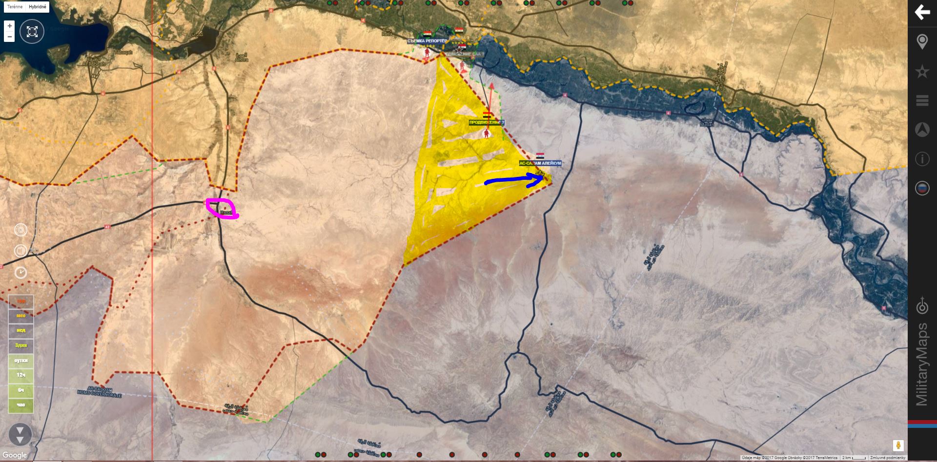 Aktualizácia:IgorT píše: ↑24 črc 2017, 15:49Palmýra. Kontrolu Plynovej stanice T2 vládnymi jednotkami hlási už aj stránka MilitaryMaps:IgorT píše: ↑24 črc 2017, 15:28V odkaze sa píše, že generál Rudskoj, okrem iného, oznámil kontrolu Plynovej stanice T2 SAA+ a vzdialenosť od hraničného prechodu s Irakom Al Bukamal 26 km. Inde som to zatiaľ nezachytil.