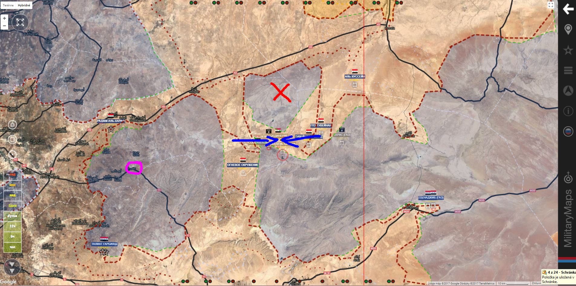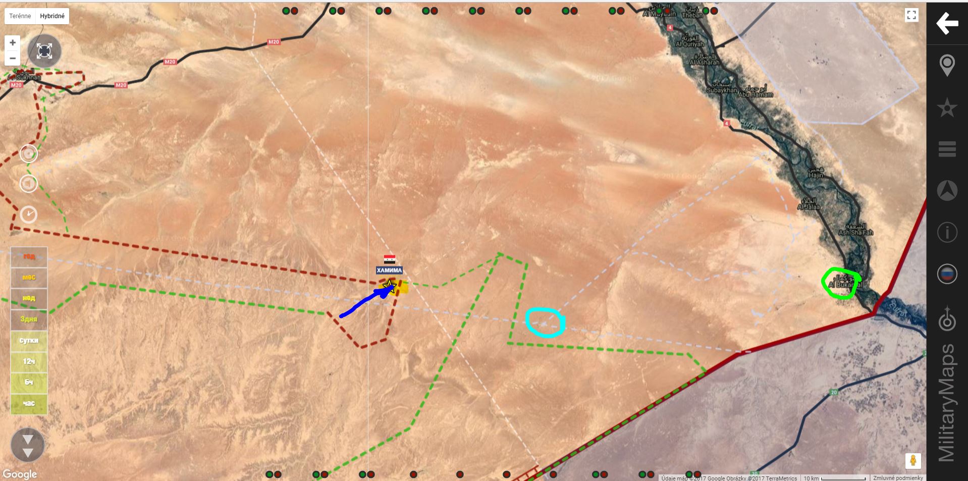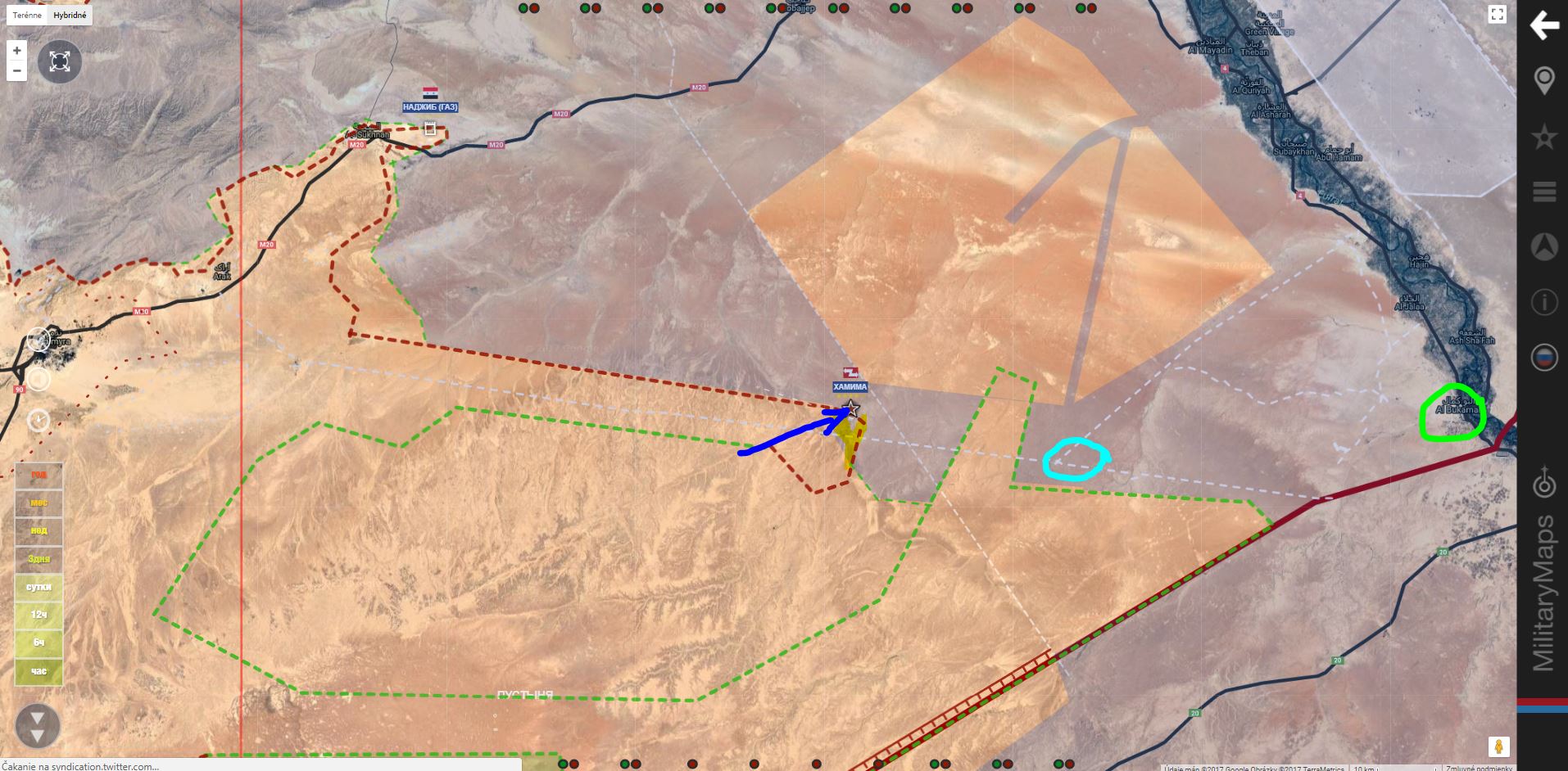 T 2 , Al Bukamal. SAA+získali južnú a strednú časť oblasti Hummaimah a útočia na militantov Daiš v severnej časti.