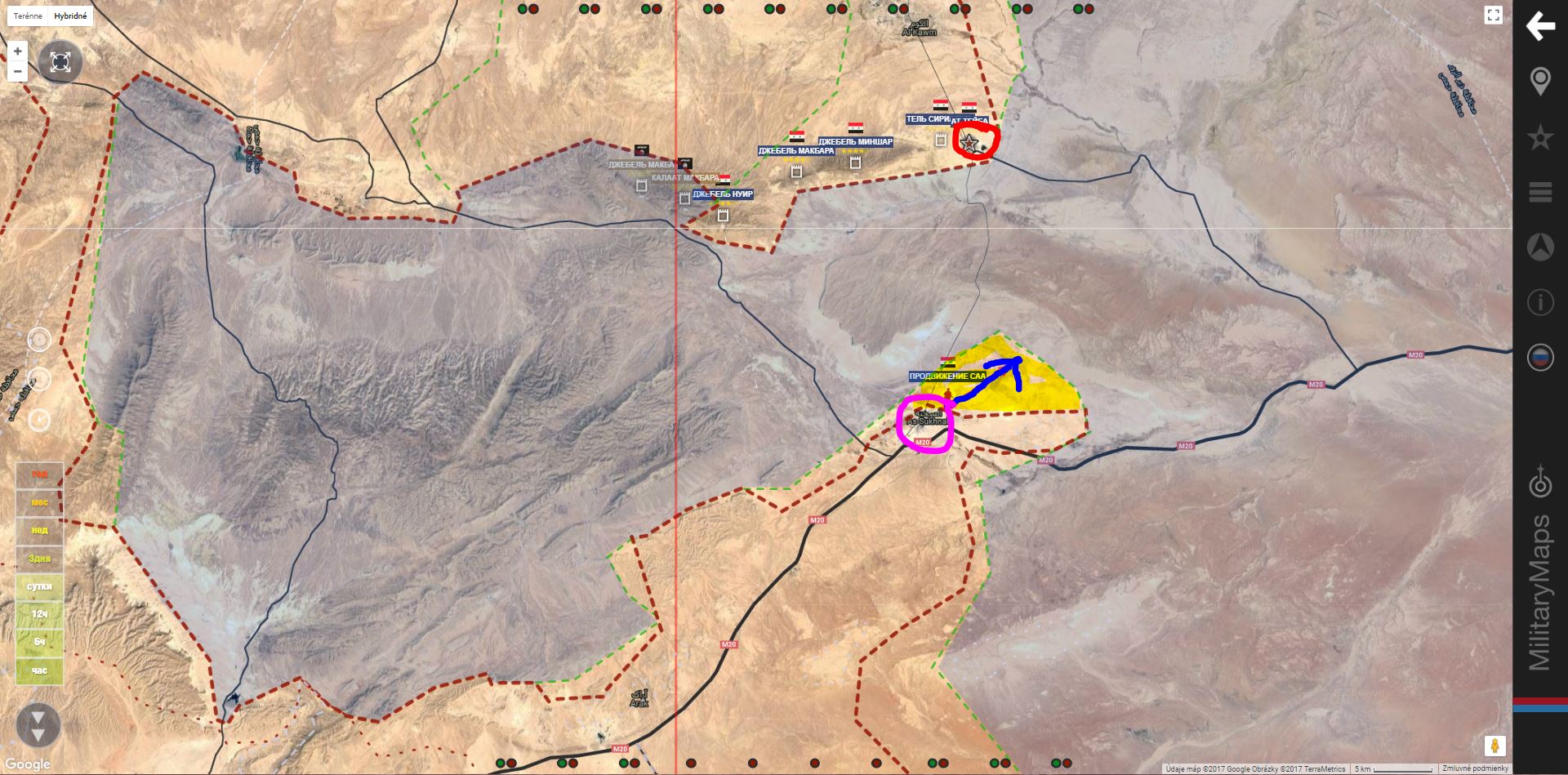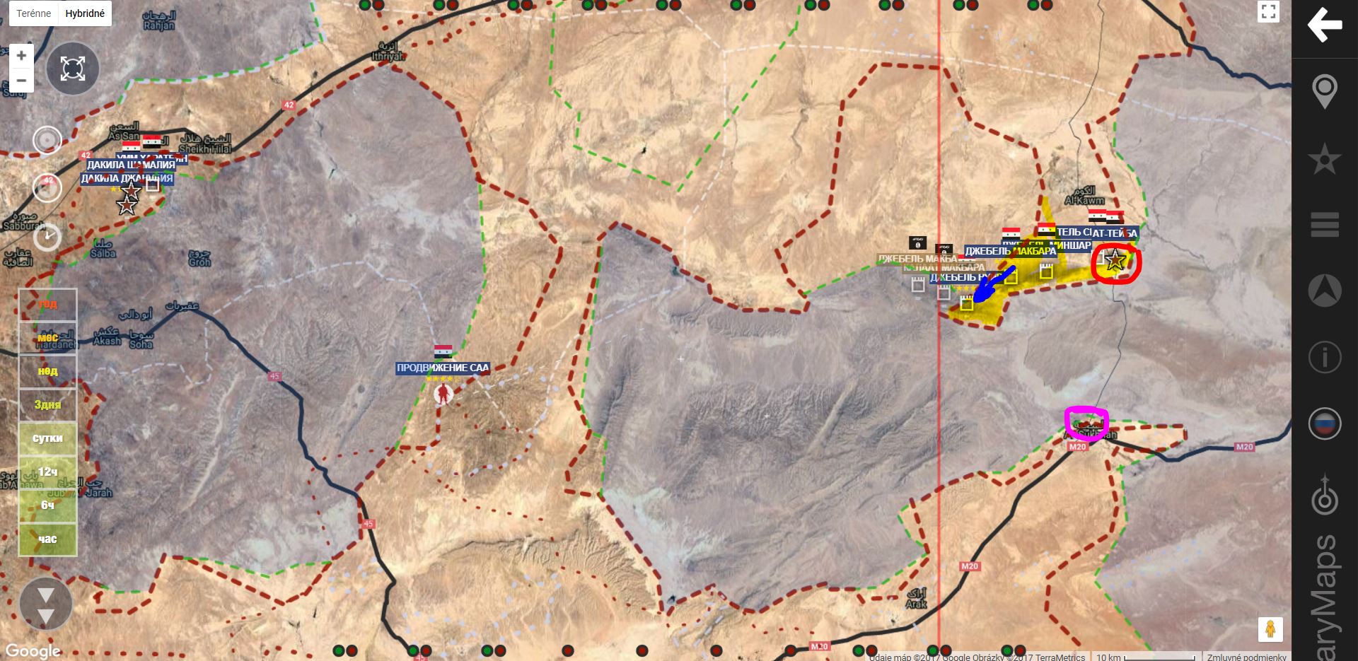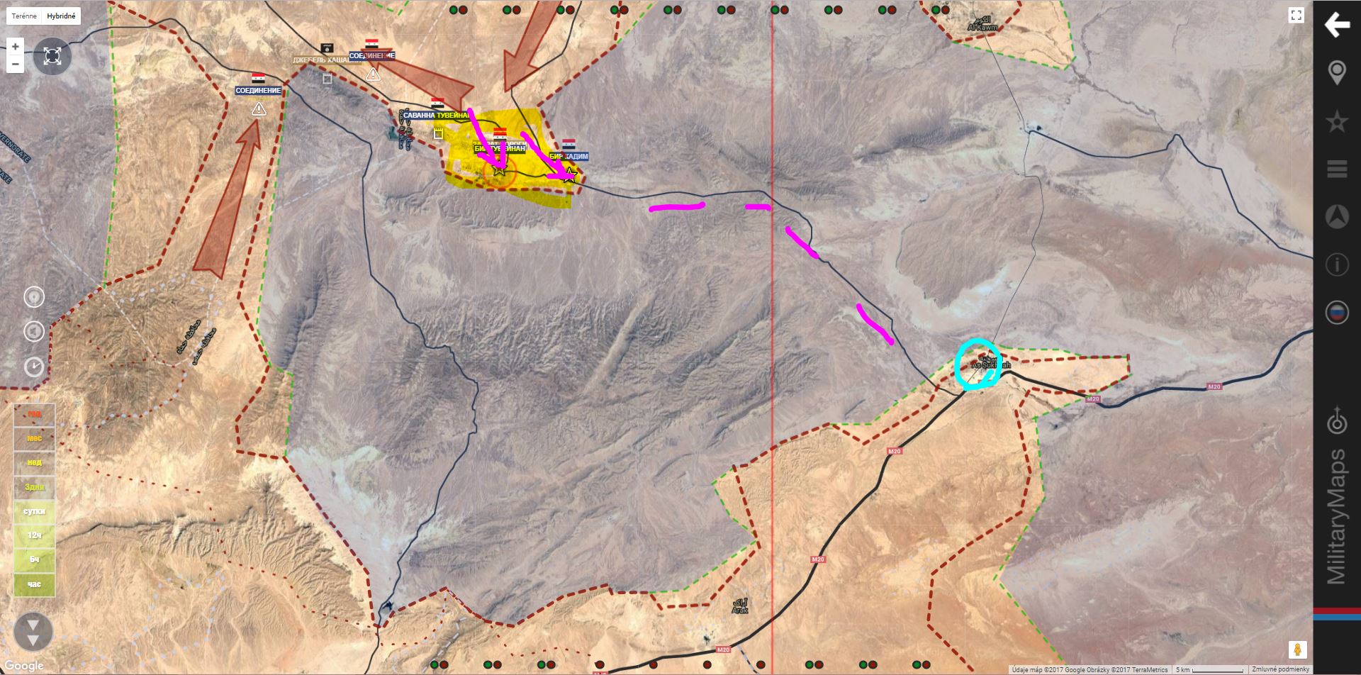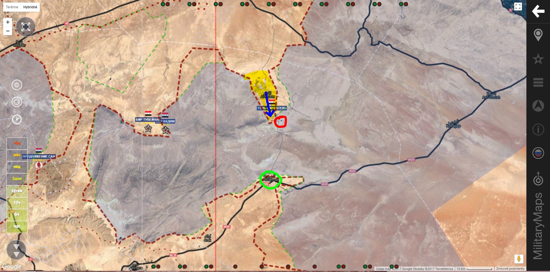 T 2 , Al Bukamal. SAA+získali južnú a strednú časť oblasti Hummaimah a útočia na militantov Daiš v severnej časti.