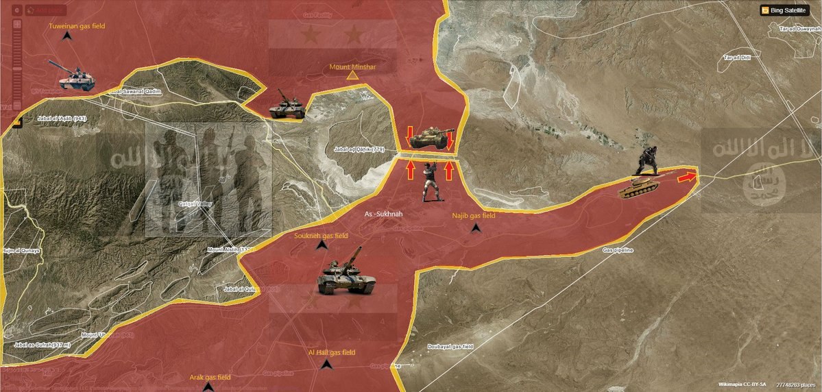 As Suknah. Vyzerá to, že po obsadení Al Quwayr - Al Latum - Ḑahr al Matlah zacvakla ďalšia pastička a je hotový(minimále pripravený) druhý kotol v centre Sýrie.