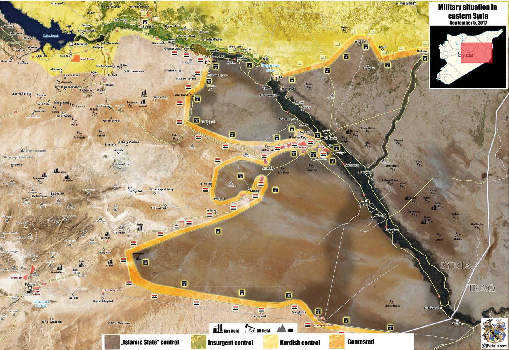 Mapa Deir Ezzor a okolie podľa reportáži Syrian State TV - Kobajeb a Ash Shola stále pod ISIS kontrolu, SAA Kobajeb obklučuje ...