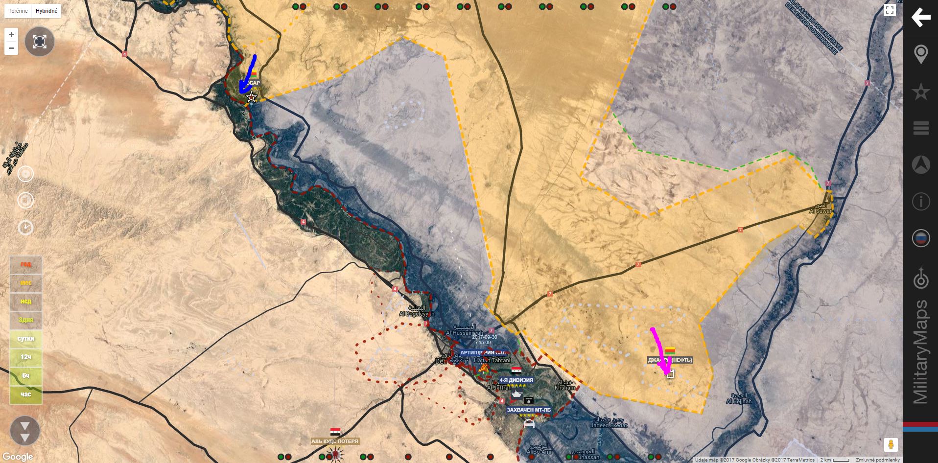 Mapa postupu SDF směrem k oblasti "Jafra" (zpracovatelské zařízení a ropná pole)