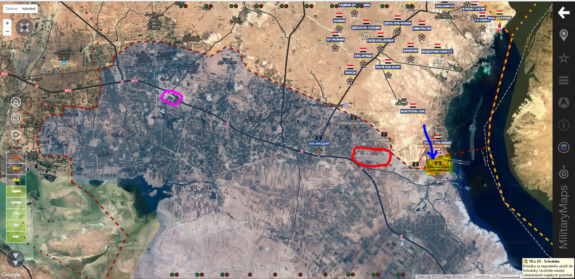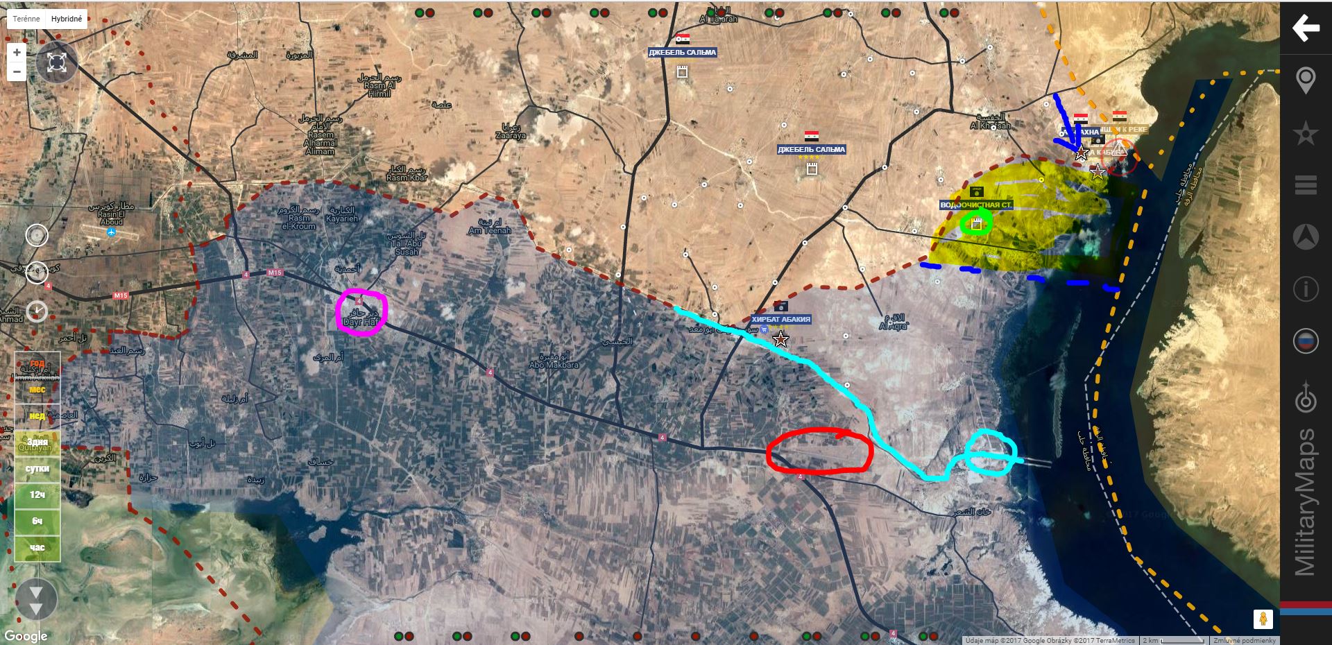 2. vetvy vodnej cesty a čerpacej stanice zásobujúcej vodou Aleppo.