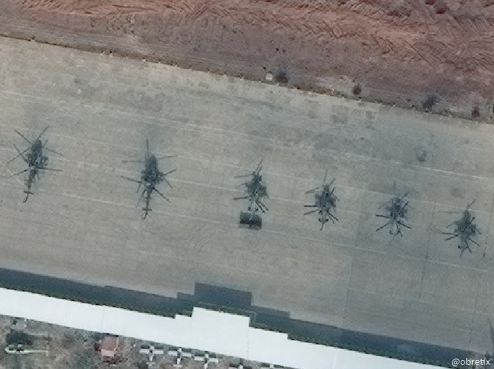 Vrtulníky VKS RF na letecká základně Kuvejris, Sýrii - 8. 11. 2017 (2x Mi-28, 4x Ka – 52)