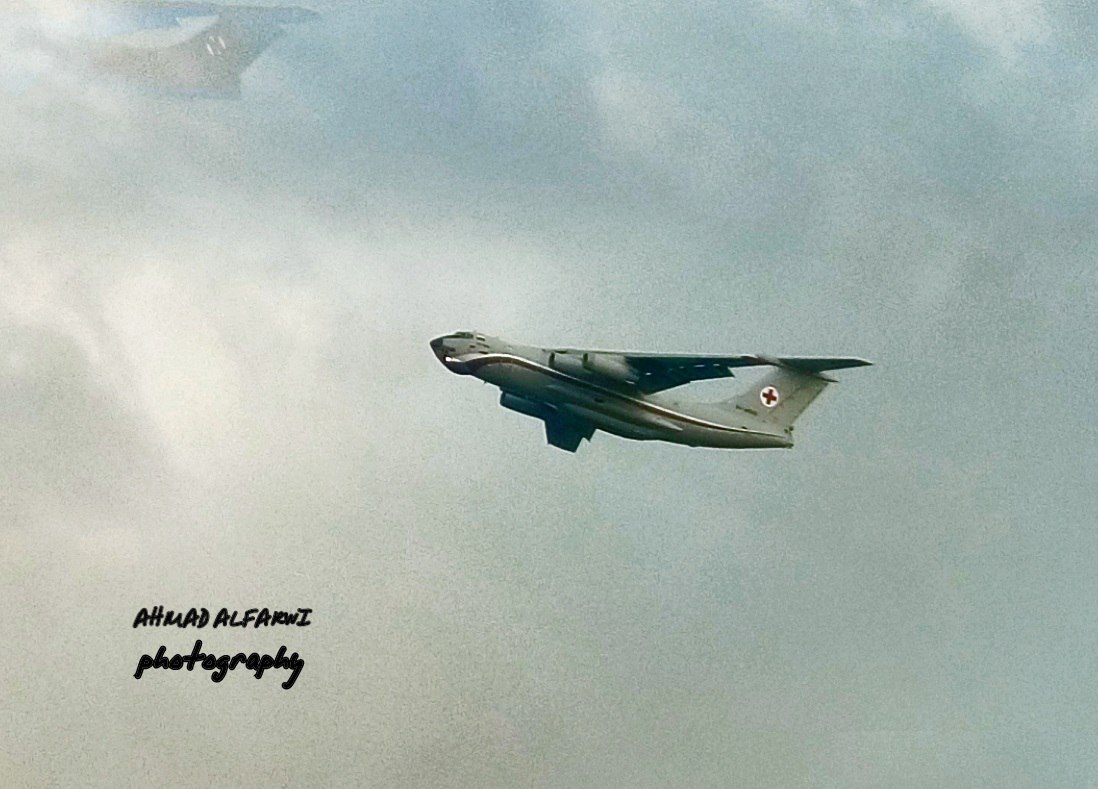 Il-76MD "Scalpel MT". Letoun byl vyfocen při odletu 2. ledna 2018 z letecké základny Hmejmim