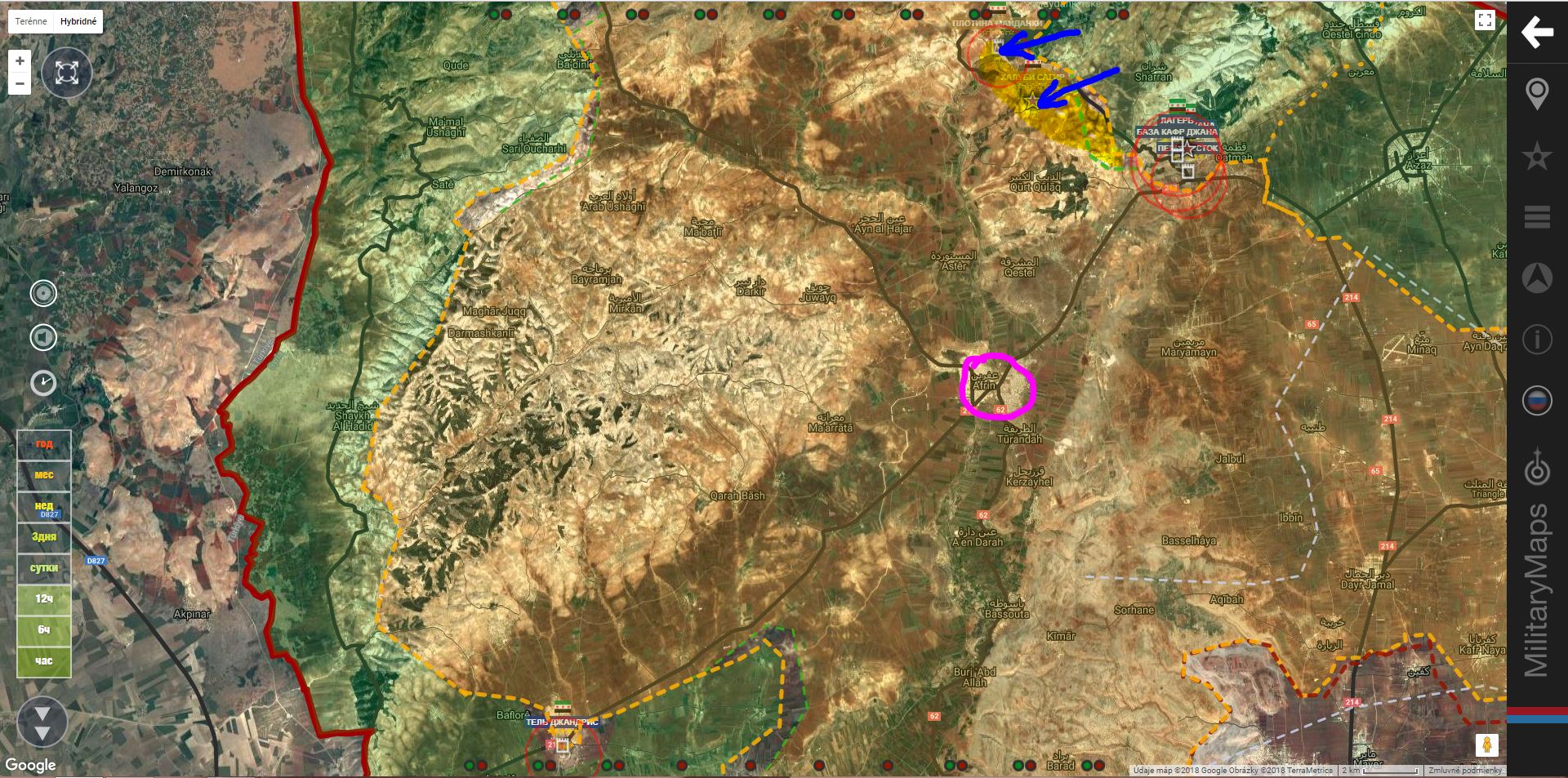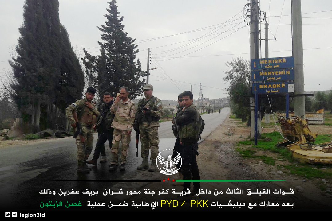 Afrin. TFSA+ sa dostala ku križovatke Meriske. Na juhu obsadila opevnený kopec Tal Jinderes.
