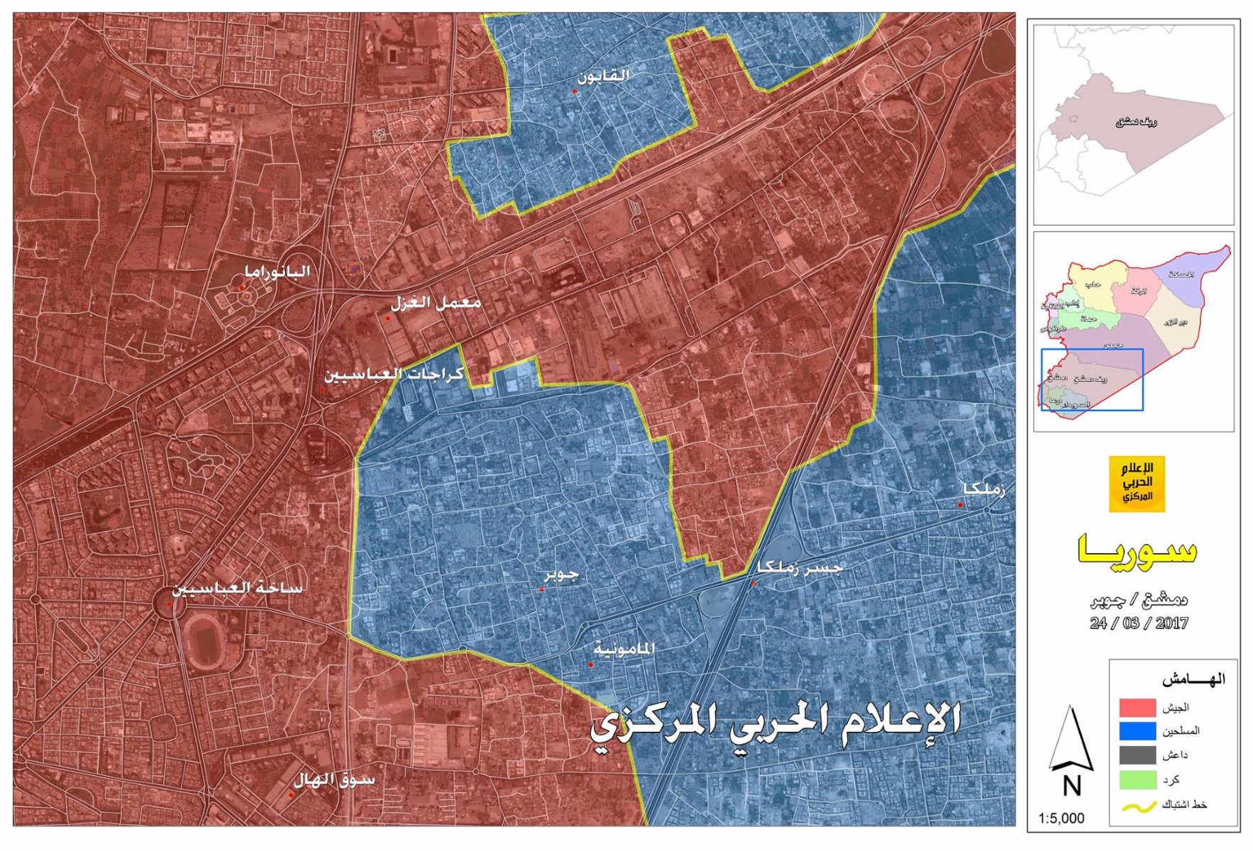 Damašek. Po 6 ich dňoch bojov sa obnovili hranice priemyselného územia do východzieho stavu. Hay'at Tahrir al-Sham (predtým Jabhet al-Nusrat) stiahla svojich bojovníkov z bojiska včera večer. Poľný reportér usudzuje, že takéto stiahnutie môže byť vykonané v dôsledku ťažkých strát.