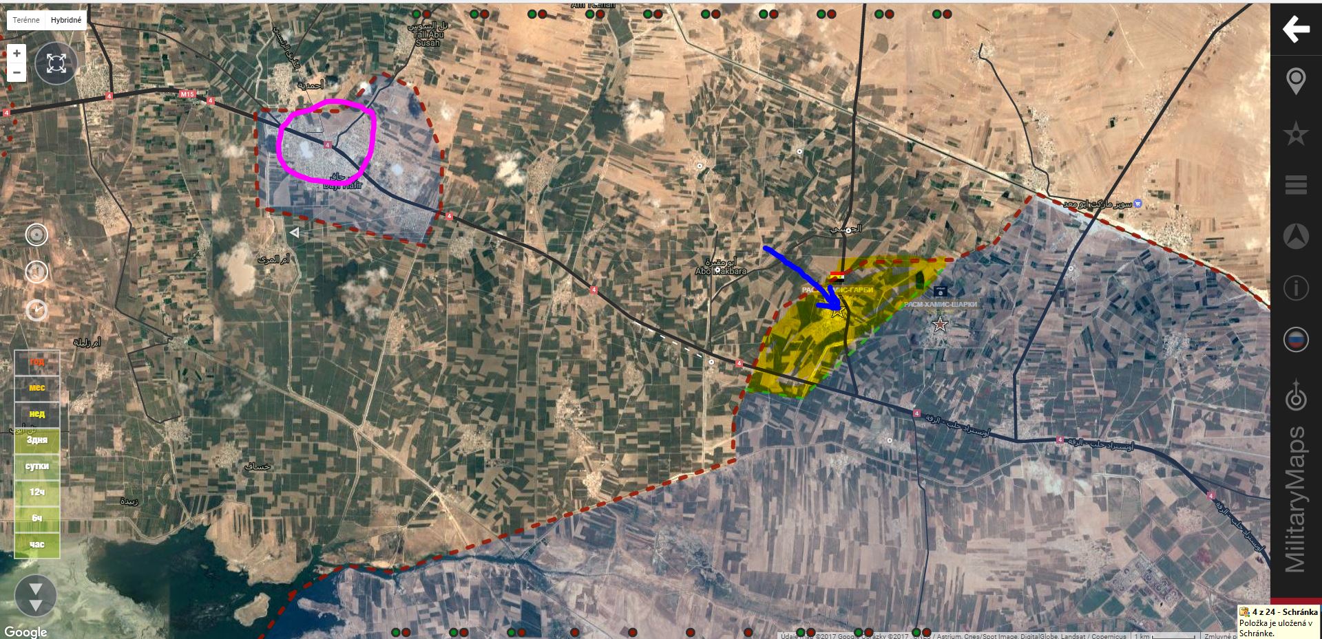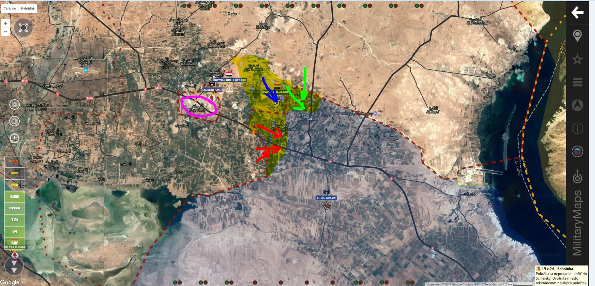 Dnešná situácia. SDF + získali Sahl al-Khashab a Uwayj Wedyan, podľa
