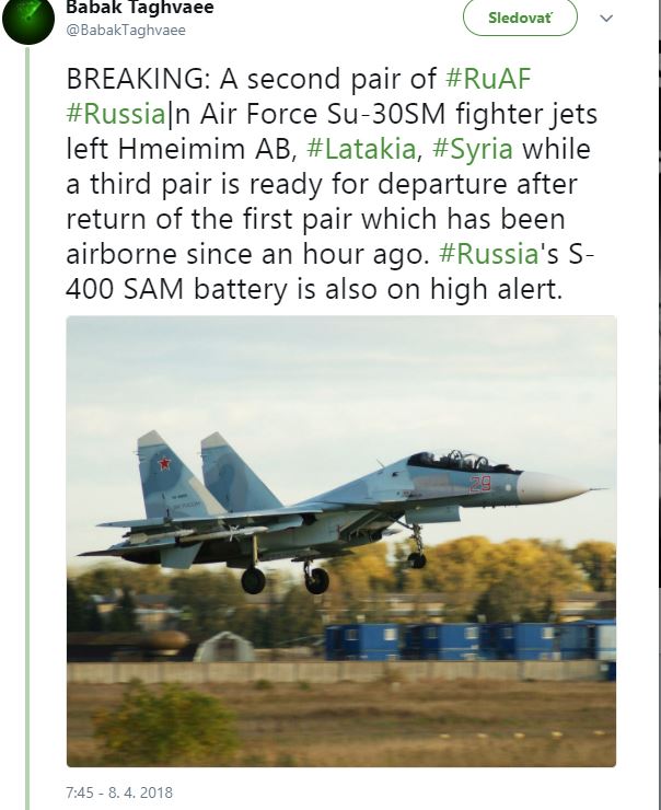 Ruské ministerstvo obrany vraví, že Izrael! Dve F-15 vystrelili osem riadených rakiet z územia Libanonu.Juraj píše: ↑09 dub 2018, 06:01Utok na syrsku zakladnu T4 nevykonali Americania, tvrdi sa vo vyhlaseni Pentagonu, Izrael sa odmietol vyjadrit.