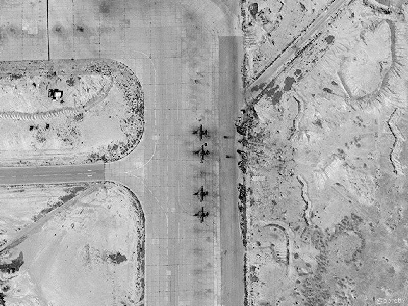 Letecká základna "Tijas", provincie Homs 3. května. 4 Su-25 VKS a devět helikoptér, mezi nimi tři Ka-52